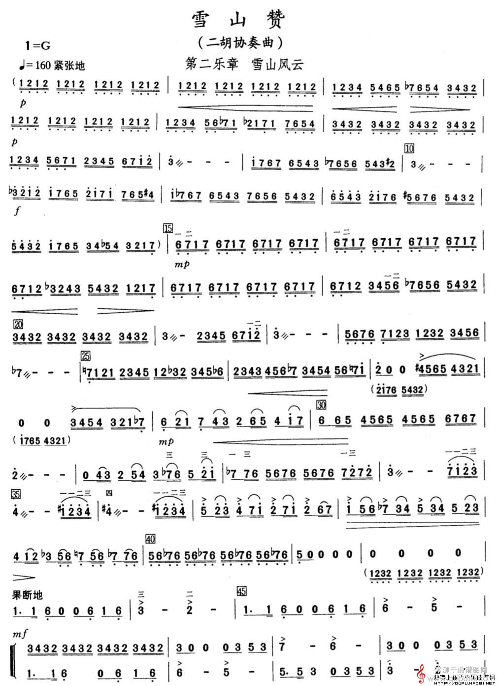 曲谱图网为您提供雪山赞·第二乐章·雪山风云(二胡协奏曲雪山赞·第二乐章·雪山风云简谱)找谱子,就上曲谱图网。
