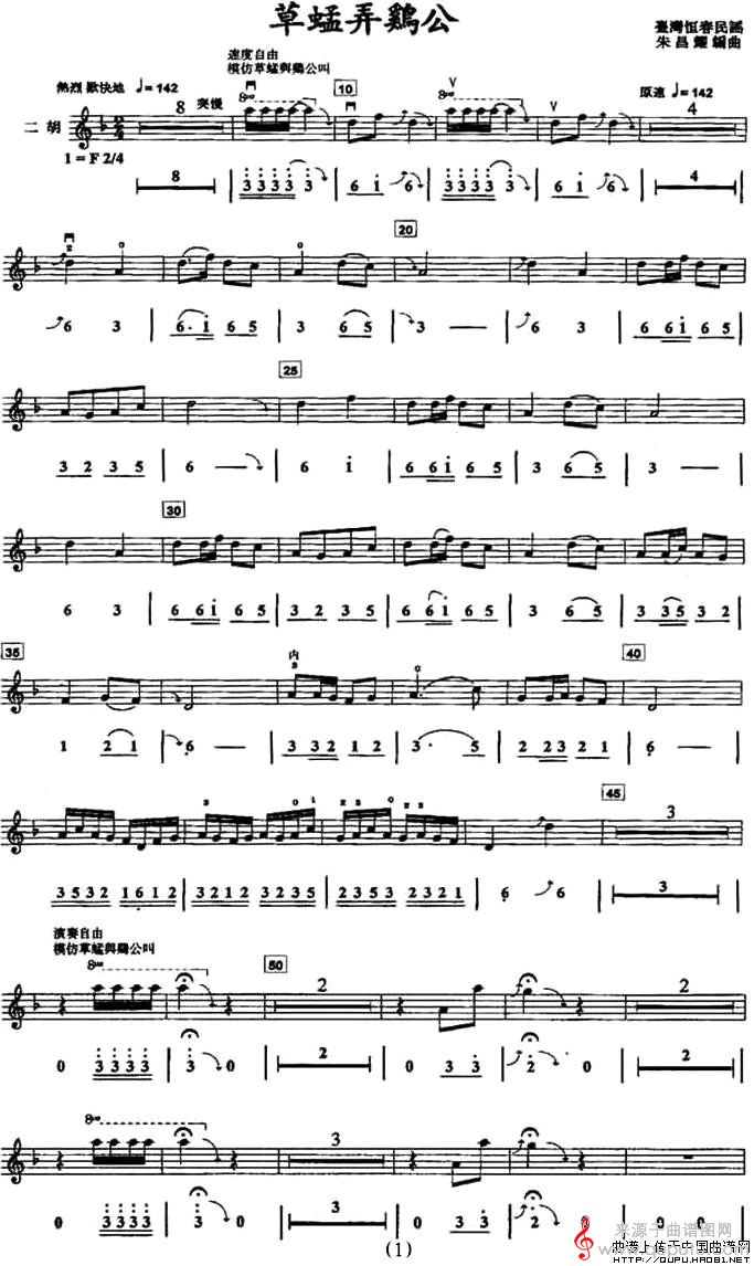 曲谱图网为您提供草蜢弄鸡公(线、简谱混排版二胡谱简谱)找谱子,就上曲谱图网。