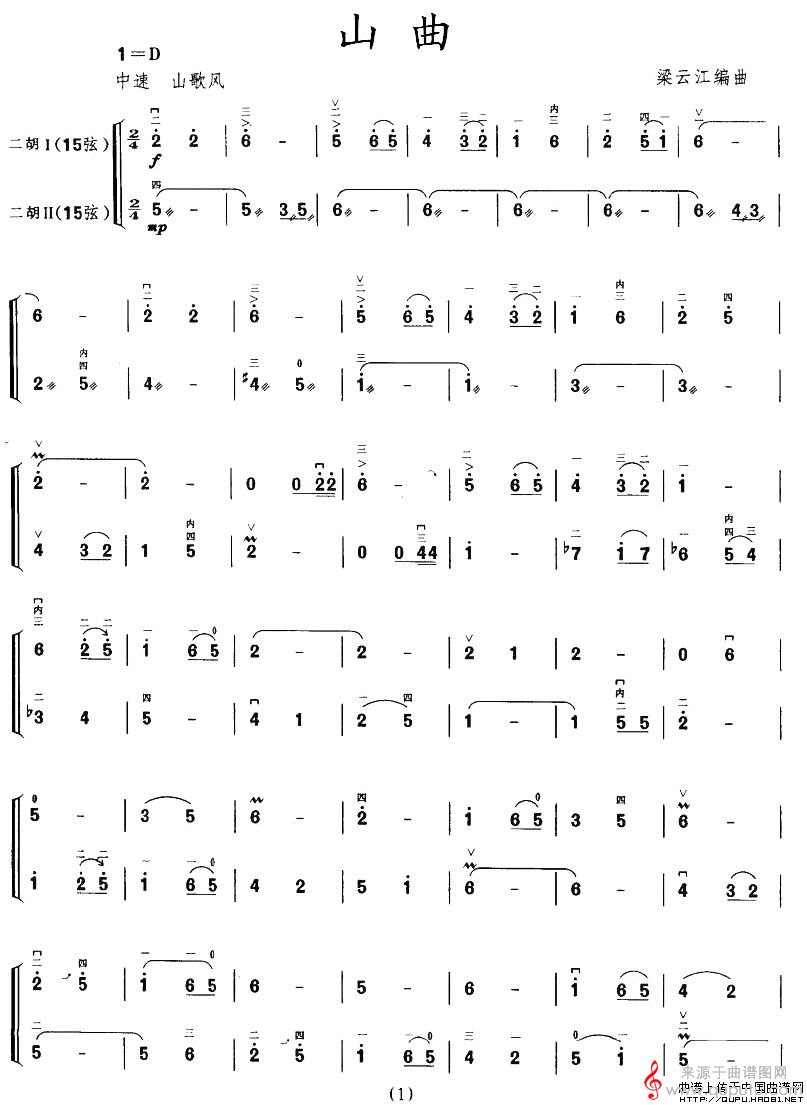 曲谱图网为您提供山曲(二胡二重奏歌词简谱胡琴谱)找谱子,就上曲谱图网。