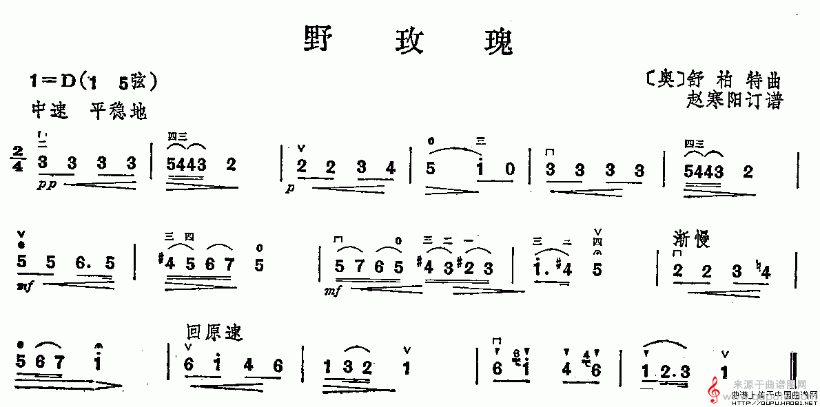 曲谱图网为您提供野玫瑰(舒柏特作曲版简谱胡琴谱)找谱子,就上曲谱图网。
