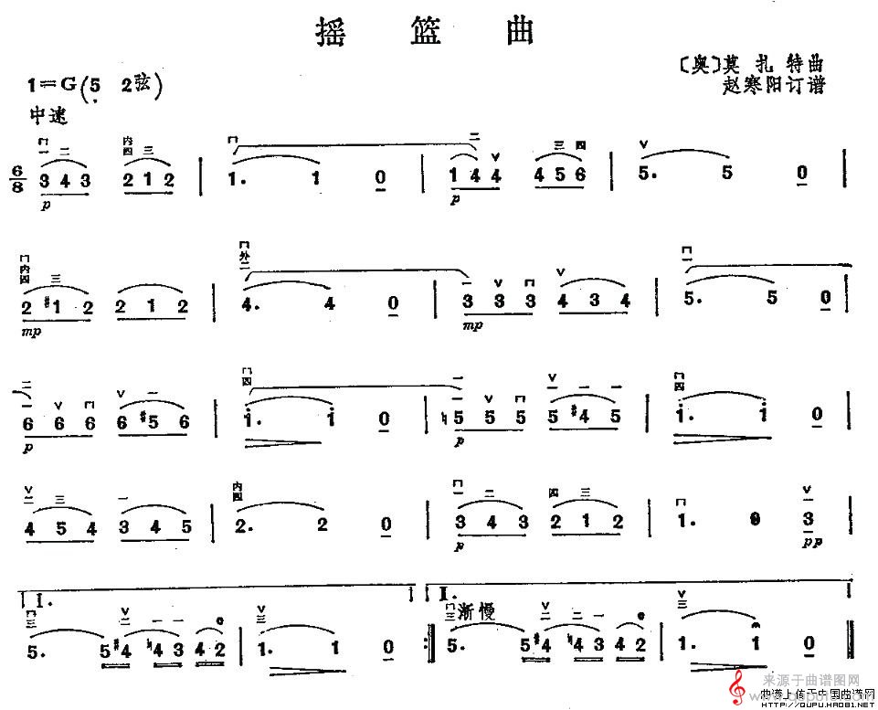曲谱图网为您提供摇篮曲(莫扎特作曲版简谱胡琴谱)找谱子,就上曲谱图网。
