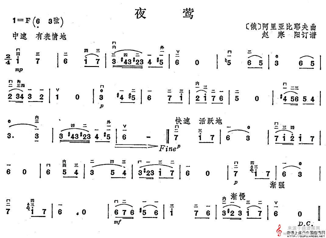 当前位置:曲谱图网器乐曲谱胡琴夜莺(夜莺歌词曲谱简谱歌曲教学)