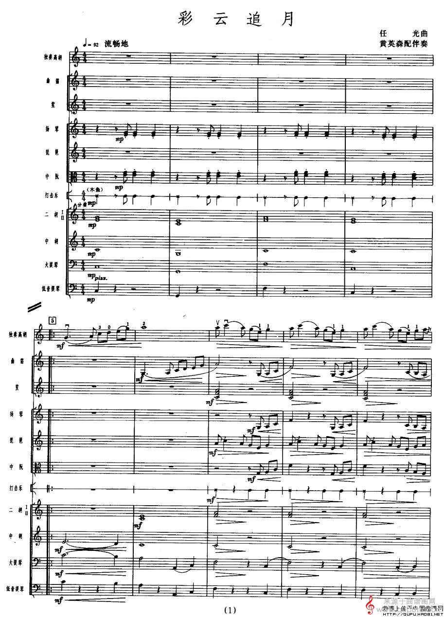 曲谱图网为您提供彩云追月(五线谱彩云追月高胡独奏+伴奏总谱曲谱)找谱子,就上曲谱图网。
