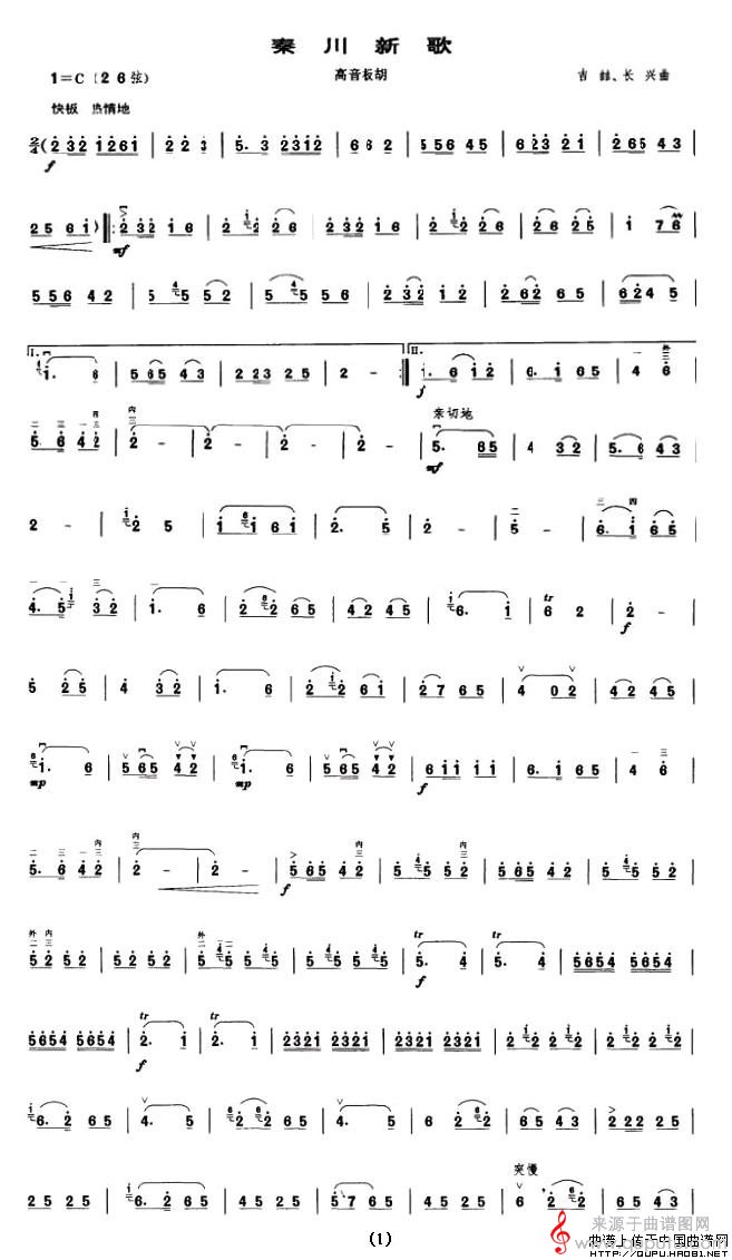 曲谱图网为您提供秦川新歌(高音板胡简谱胡琴谱)找谱子,就上曲谱图网。
