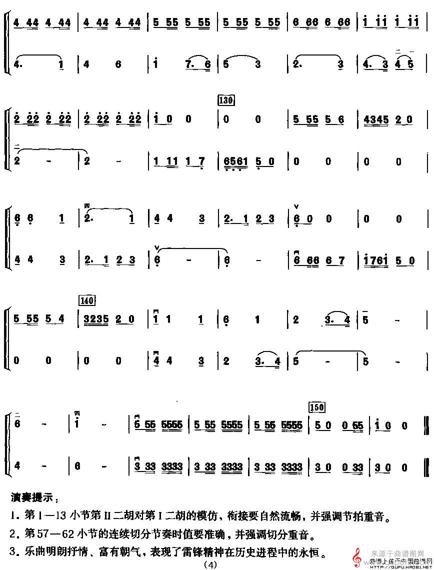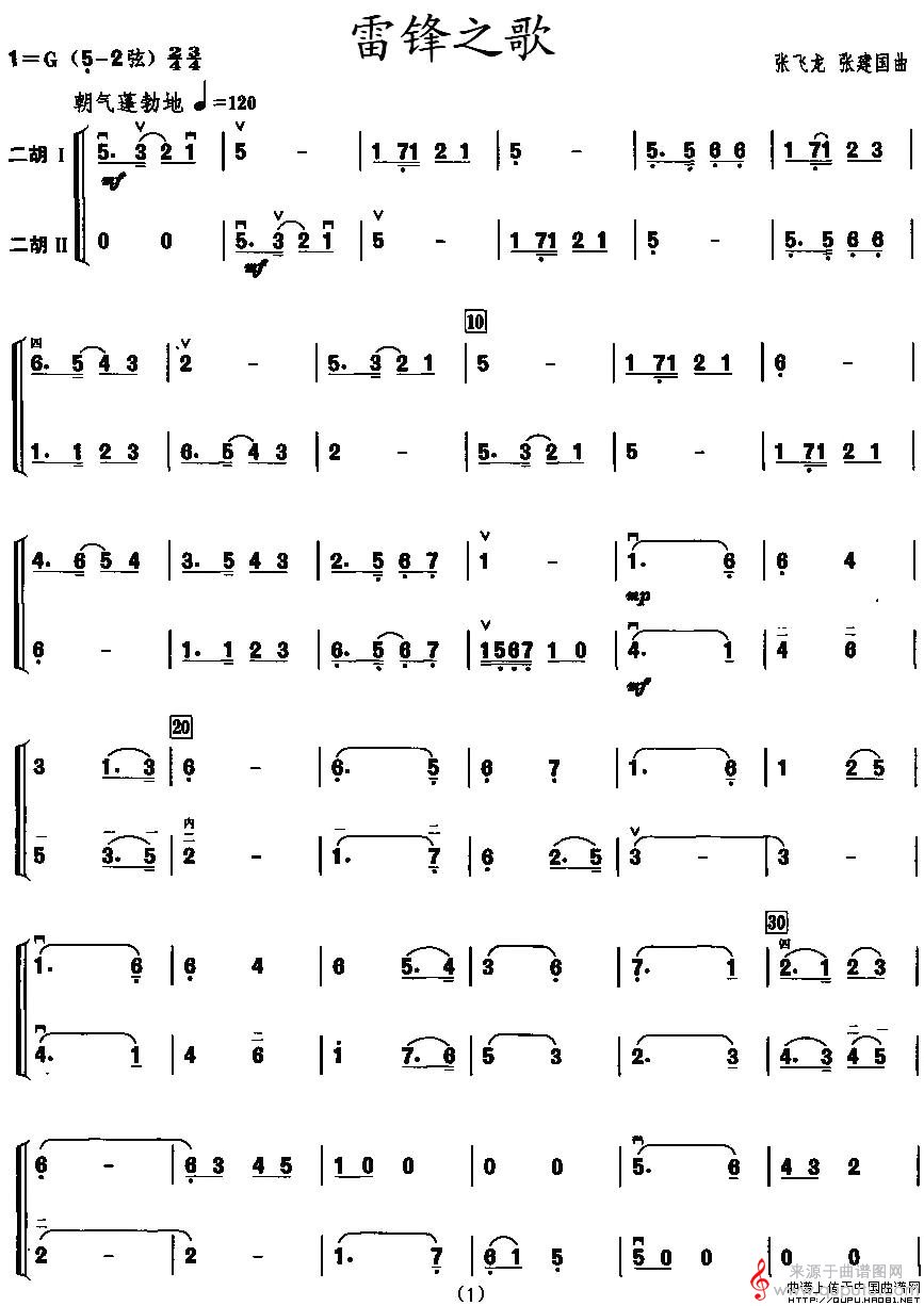 曲谱图网为您提供雷锋之歌(二重奏原创胡琴谱简谱教学)找谱子,就上曲谱图网。
