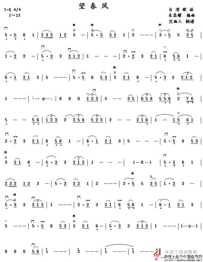 曲谱图网为您提供望春风(台湾歌谣望春风简谱曲谱)找谱子,就上曲谱图网。