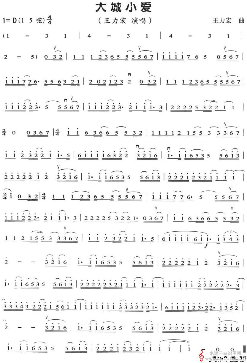 大城小爱(大城小爱简谱胡琴谱曲谱教学)