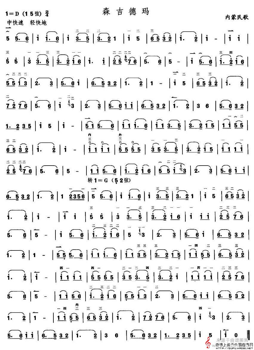曲谱图网为您提供森吉德玛(内蒙民歌森吉德玛简谱胡琴谱)找谱子,就上曲谱图网。