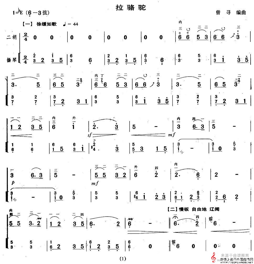 曲谱图网为您提供拉骆驼(二胡+扬琴伴奏简谱胡琴谱)找谱子,就上曲谱图网。