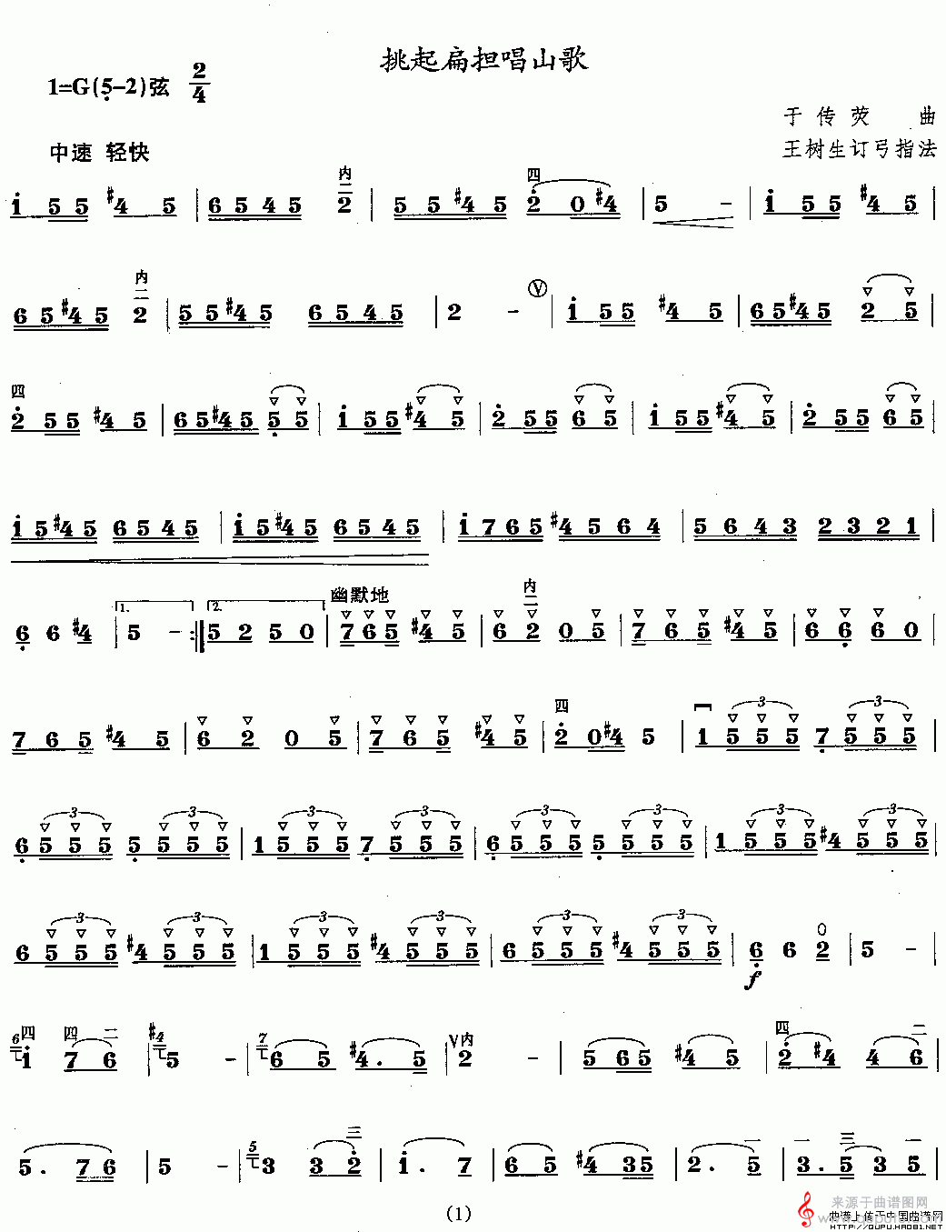 曲谱图网为您提供挑起扁担唱山歌(挑起扁担唱山歌简谱曲谱胡琴谱)找谱子,就上曲谱图网。