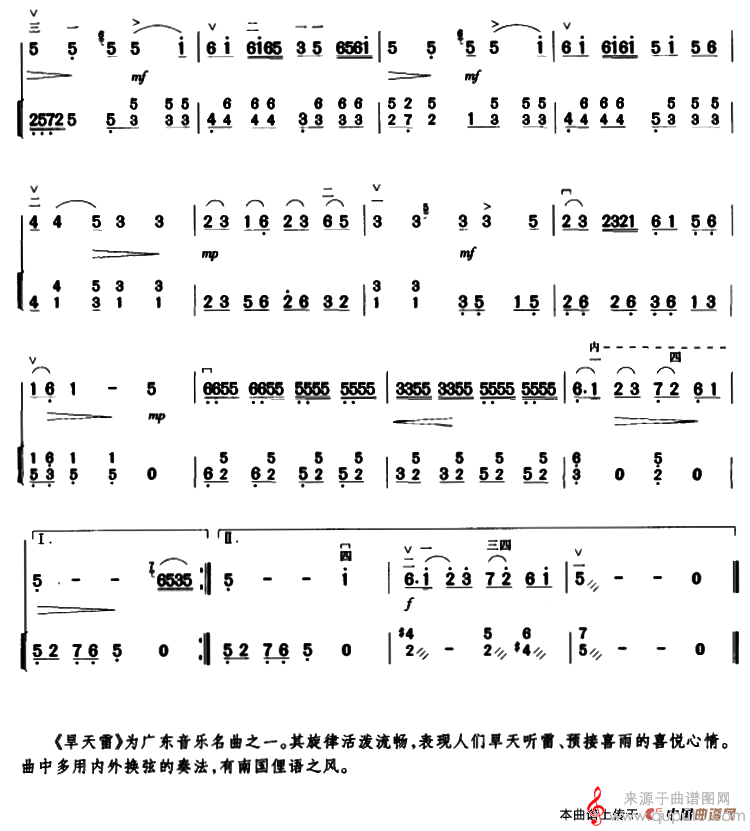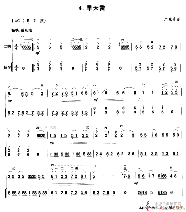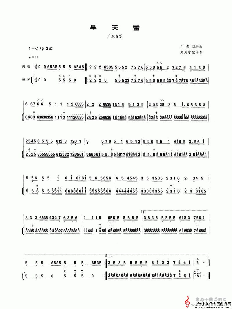 曲谱图网为您提供旱天雷(广东音乐旱天雷扬琴伴奏谱胡琴谱简谱)找谱子,就上曲谱图网。