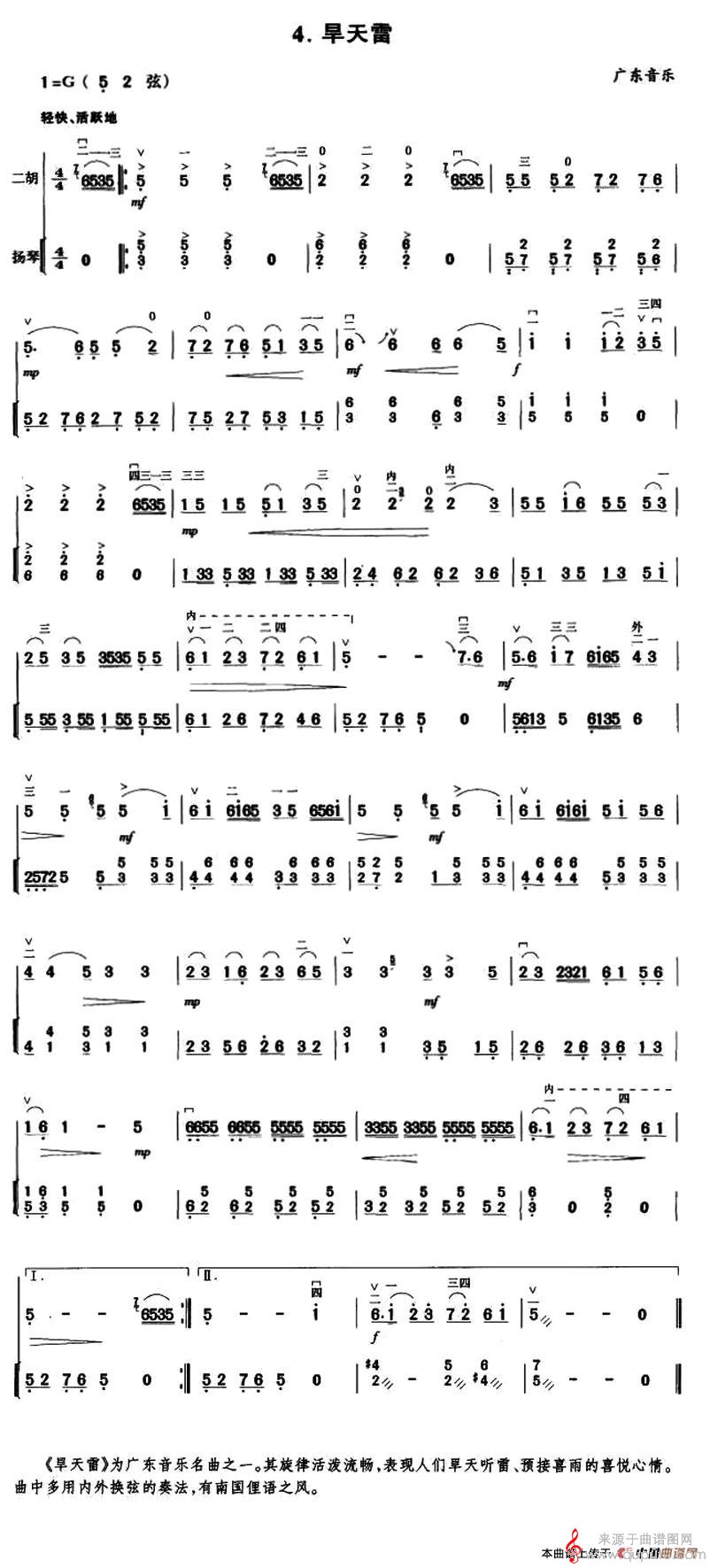 旱天雷(广东音乐旱天雷扬琴伴奏谱胡琴谱简谱)