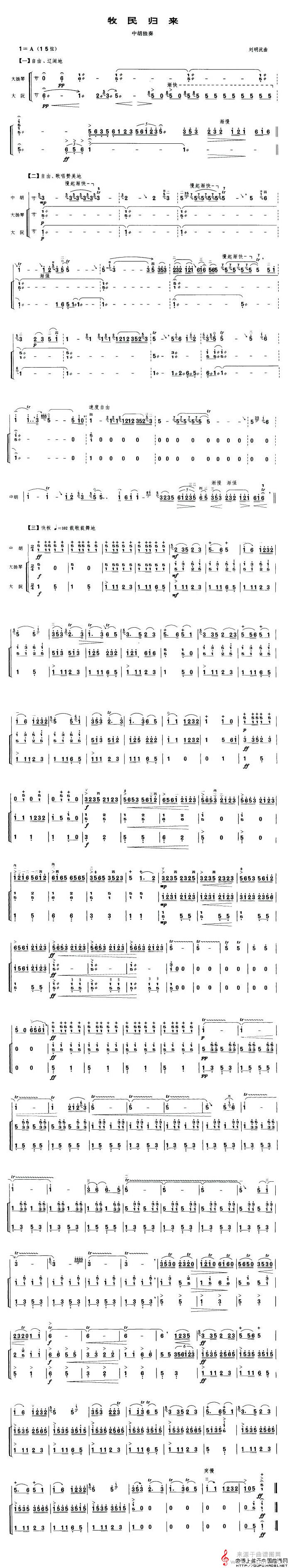 曲谱图网为您提供牧民归来(中胡独奏曲牧民归来简谱胡琴谱)找谱子,就上曲谱图网。