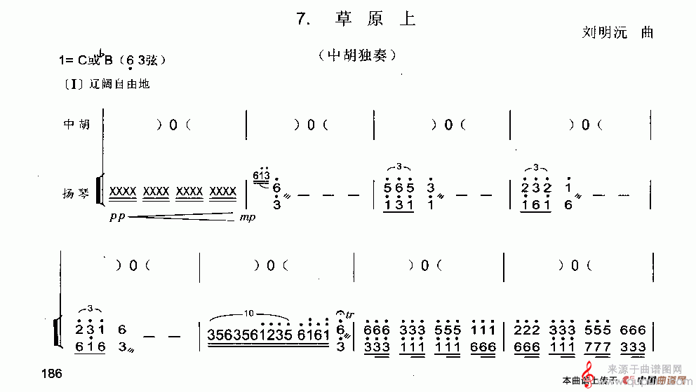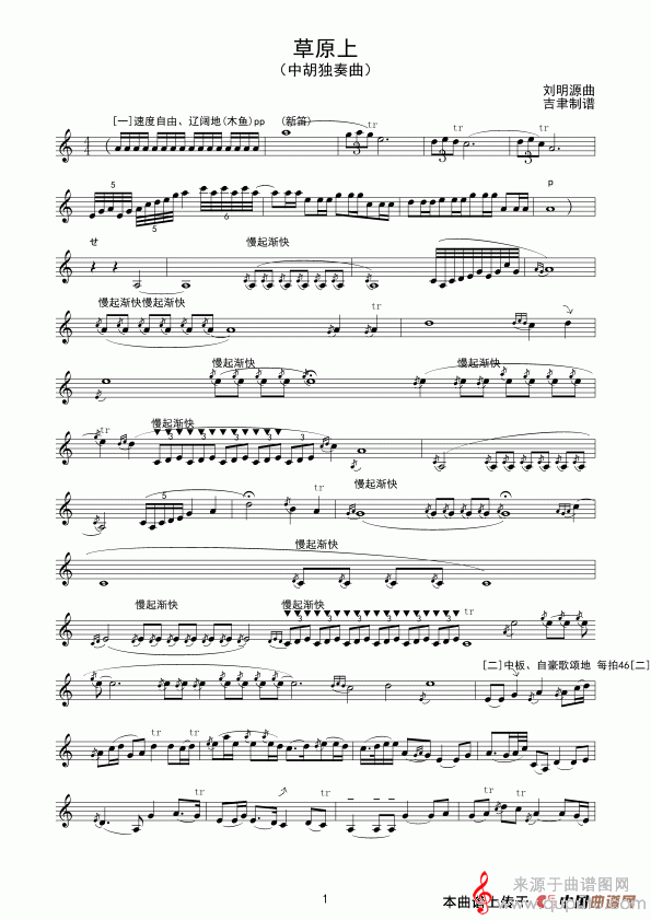 曲谱图网为您提供草原上(中胡独奏草原上简谱胡琴谱教学)找谱子,就上曲谱图网。