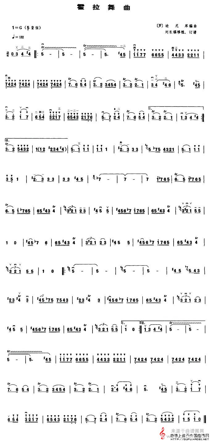 曲谱图网为您提供霍拉舞曲(刘长福移植订谱版简谱胡琴谱教学)找谱子,就上曲谱图网。