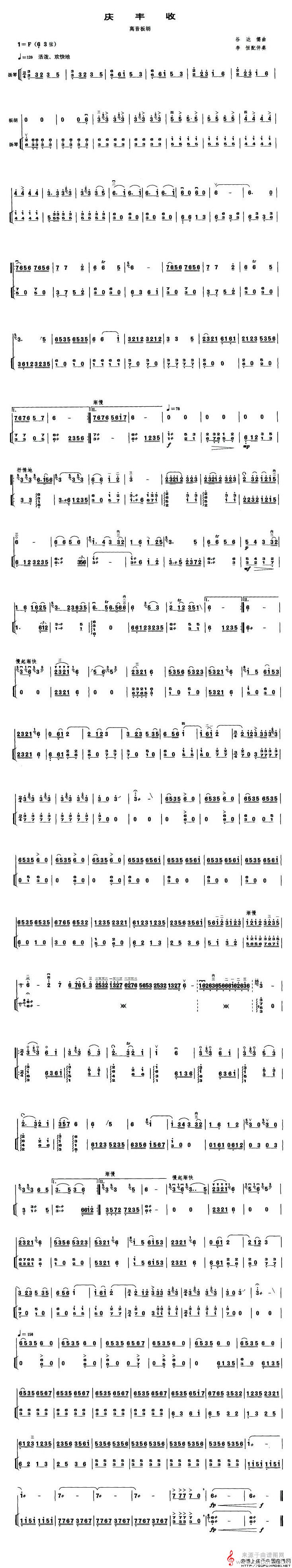 庆丰收(高音板胡、扬琴伴奏谱简谱)