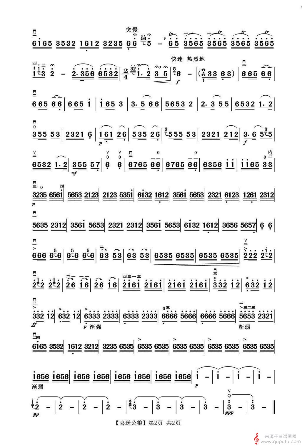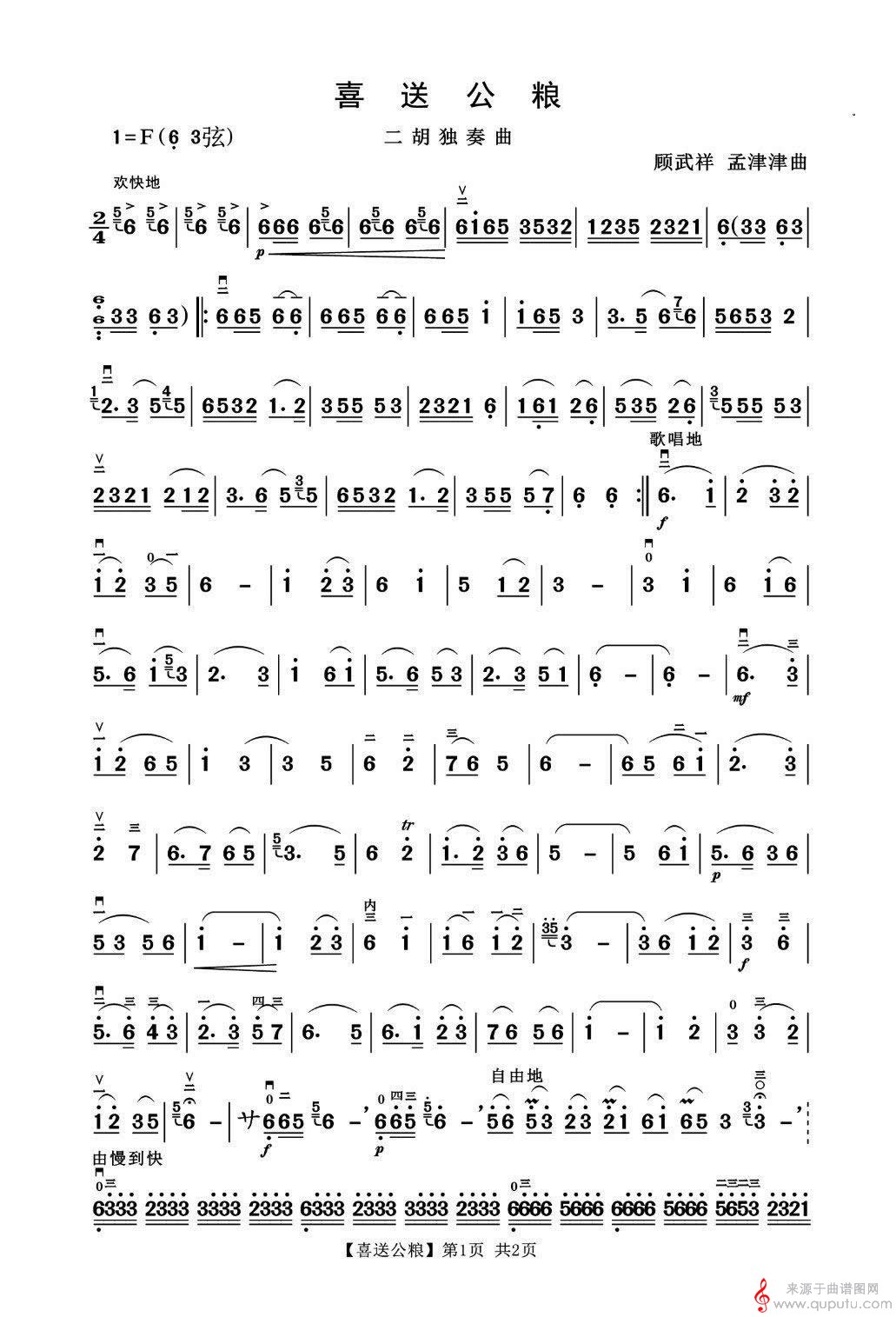 曲谱图网为您提供喜送公粮(二胡独奏曲谱)找谱子,就上曲谱图网。