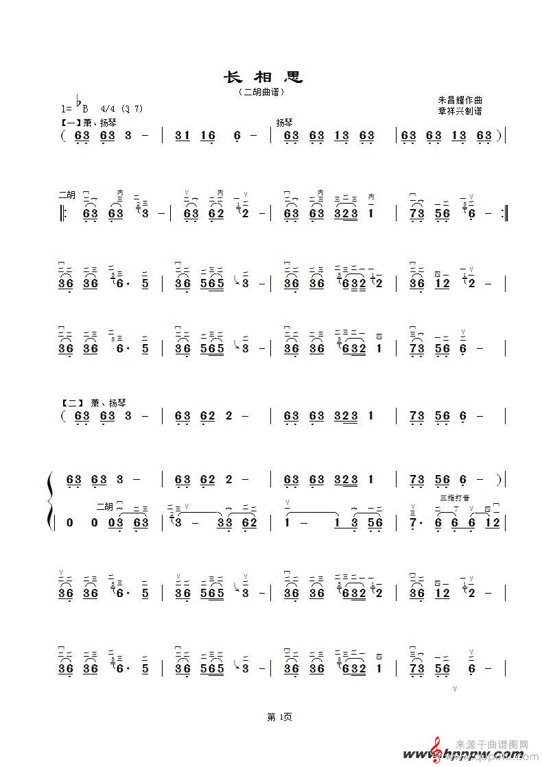 曲谱图网为您提供长相思二胡演奏曲谱找谱子,就上曲谱图网。