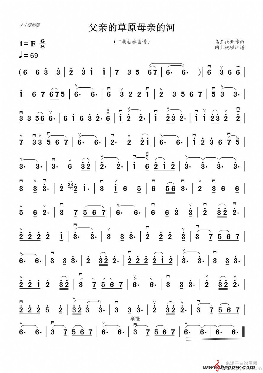 曲谱图网为您提供父亲的草原母亲的河二胡独奏曲谱找谱子,就上曲谱图网。