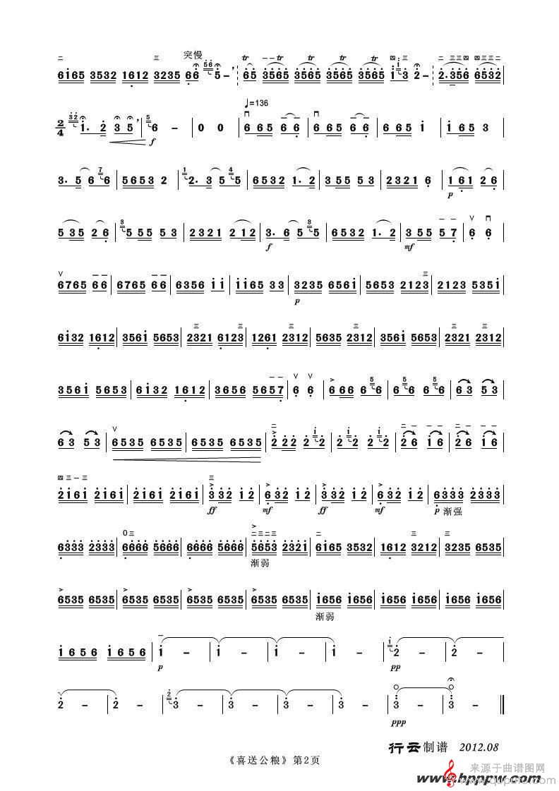 曲谱图网为您提供喜送公粮(二胡独奏曲谱简谱)找谱子,就上曲谱图网。