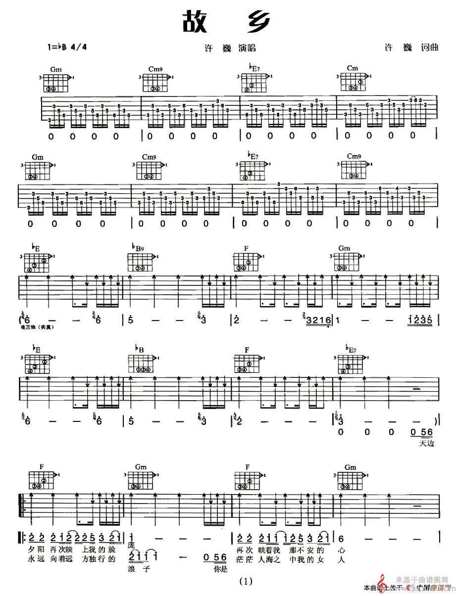 曲谱图网为您提供故乡(许巍词曲,四个版本)找谱子,就上曲谱图网。
