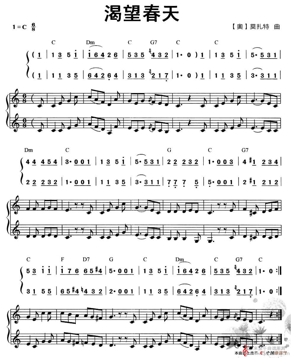 曲谱图网为您提供渴望春天(口琴口风琴二重奏线简谱)找谱子,就上曲谱图网。