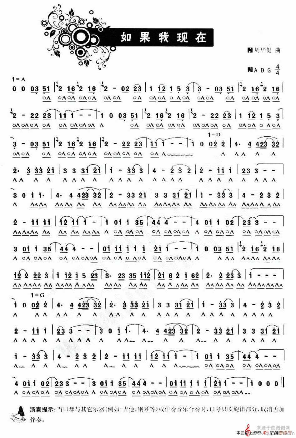 曲谱图网为您提供如果我现在(如果我现在口琴曲简谱)找谱子,就上曲谱图网。