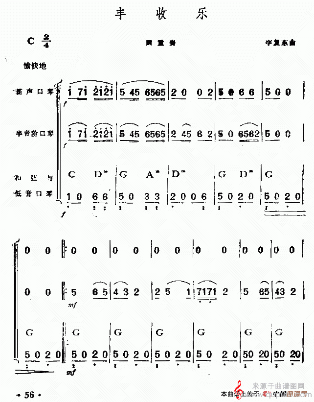 曲谱图网为您提供丰收乐(口琴曲四重奏吹奏简谱)找谱子,就上曲谱图网。
