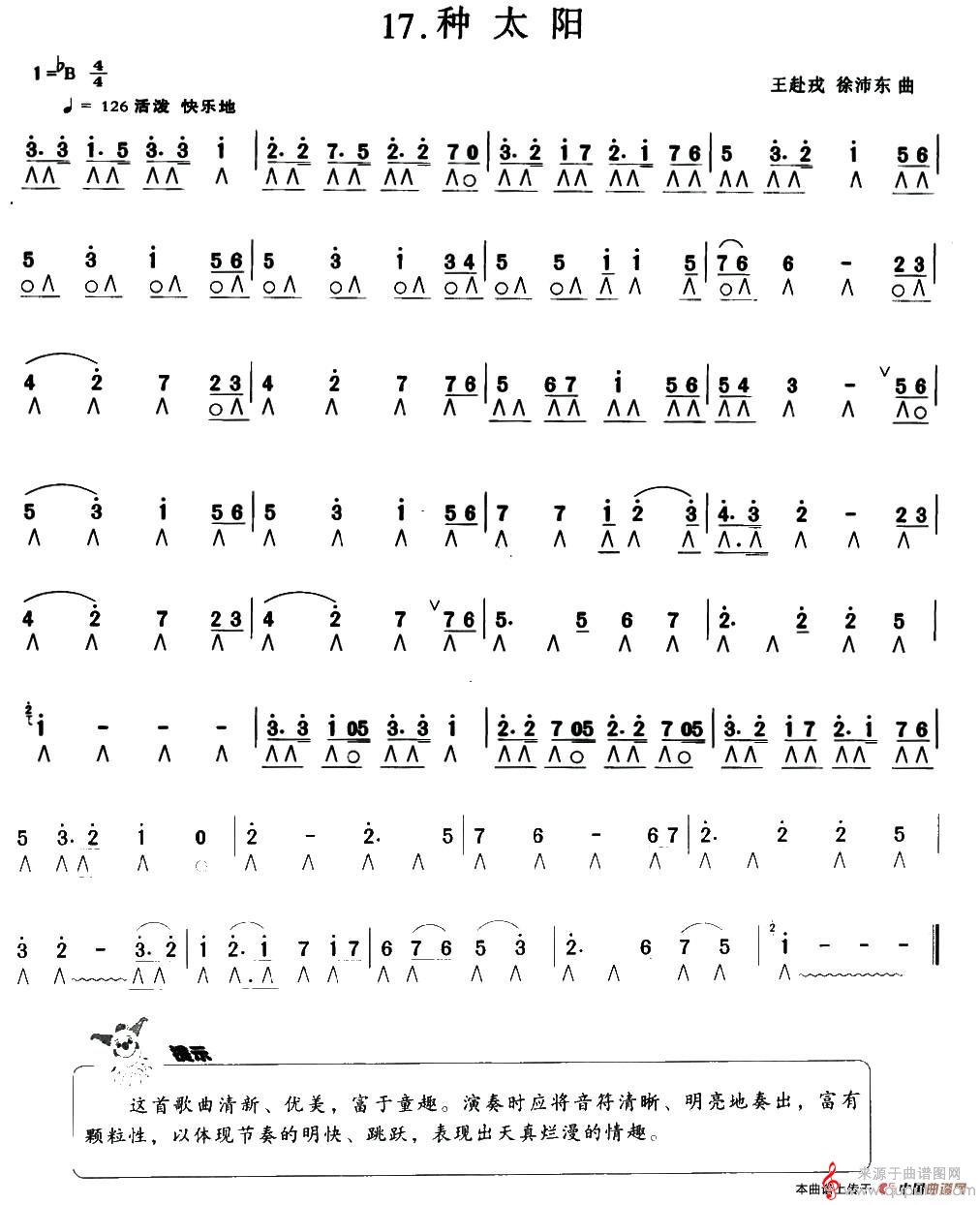 曲谱图网为您提供种太阳(口琴曲弹奏简谱)找谱子,就上曲谱图网。