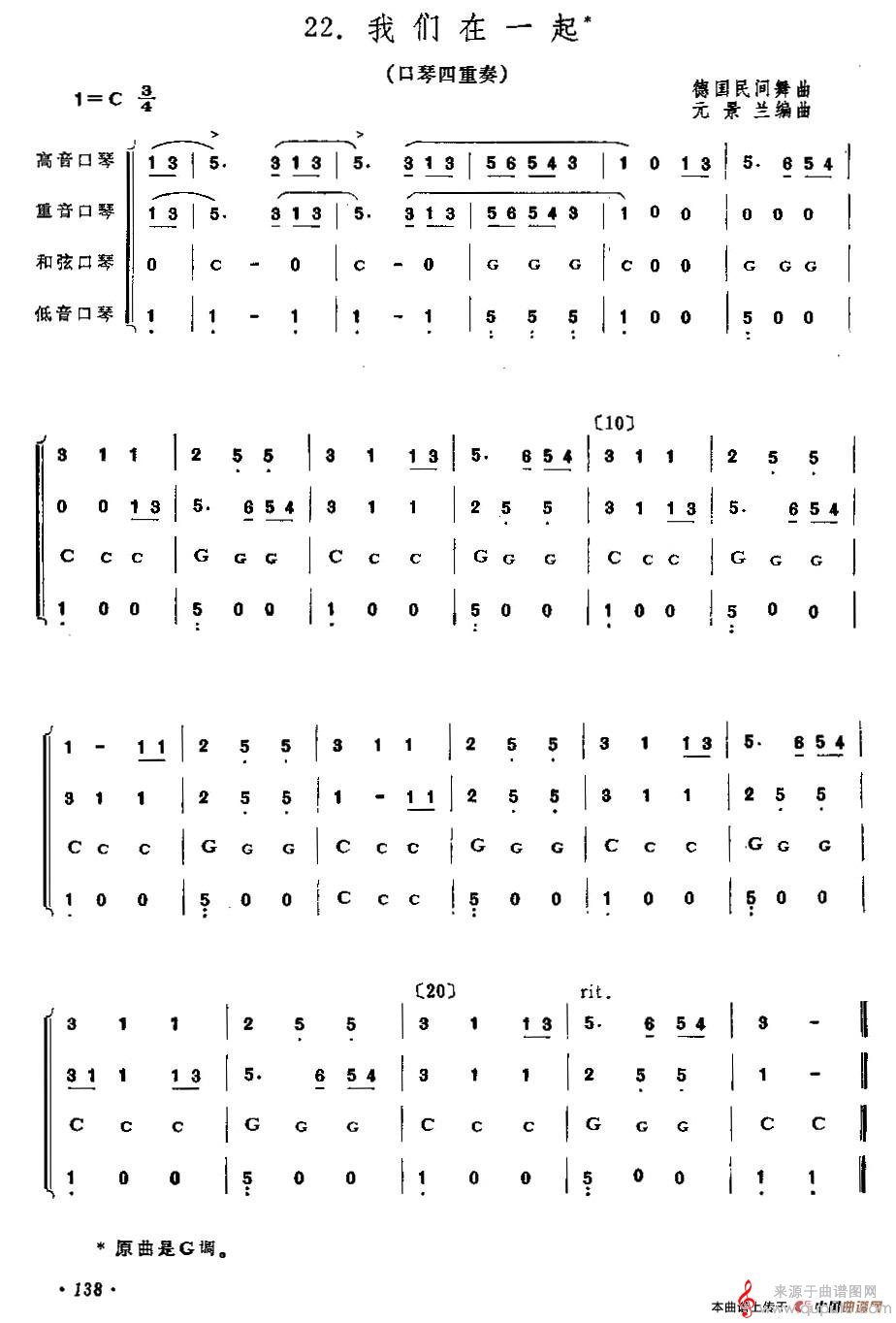我们在一起(口琴曲四重奏教学简谱)