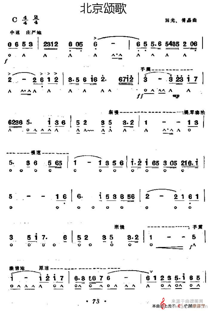 曲谱图网为您提供北京颂歌(口琴曲独奏简谱)找谱子,就上曲谱图网。