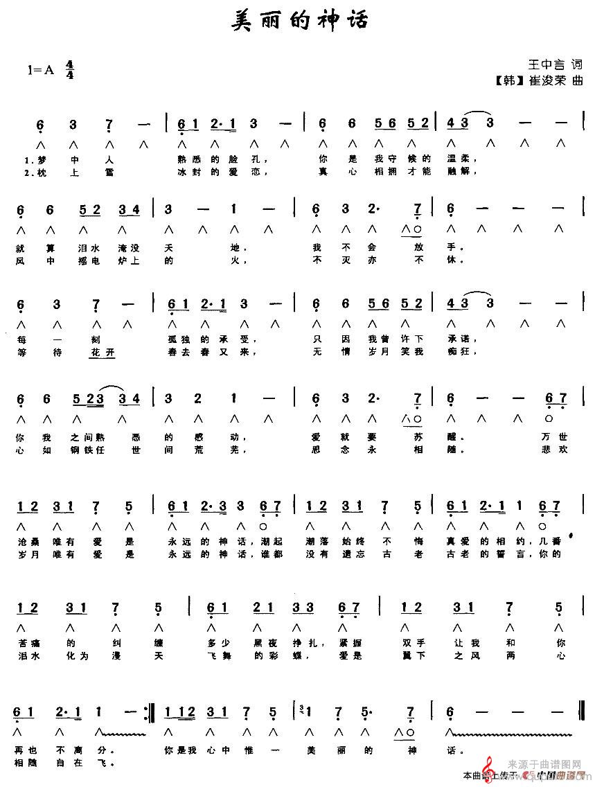 曲谱图网为您提供美丽的神话(口琴演奏简谱带歌词版)找谱子,就上曲谱图网。