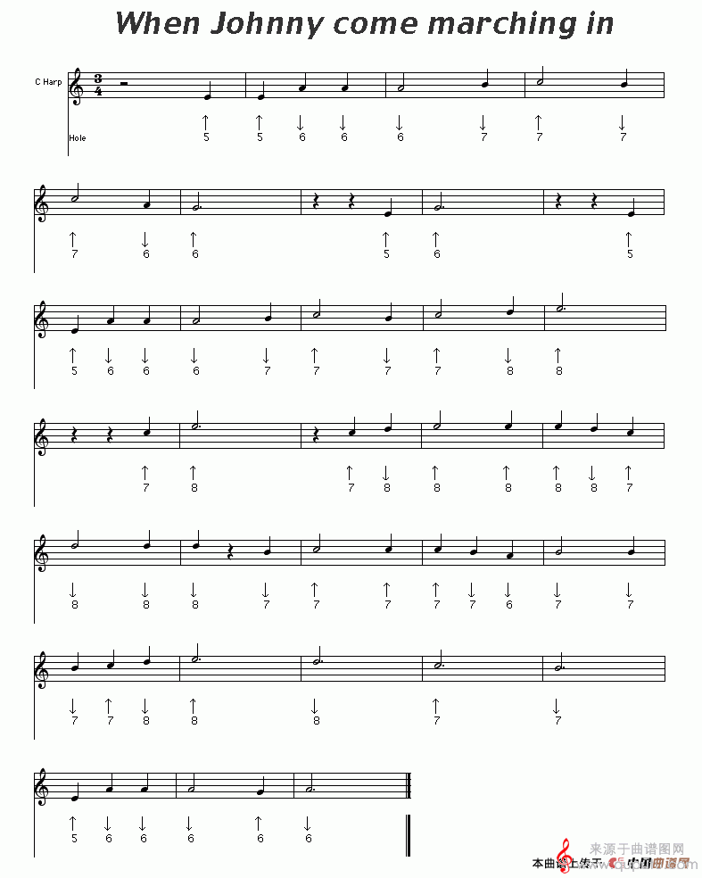 曲谱图网为您提供when johnny come marching in(口琴五线曲谱)找谱子,就上曲谱图网。