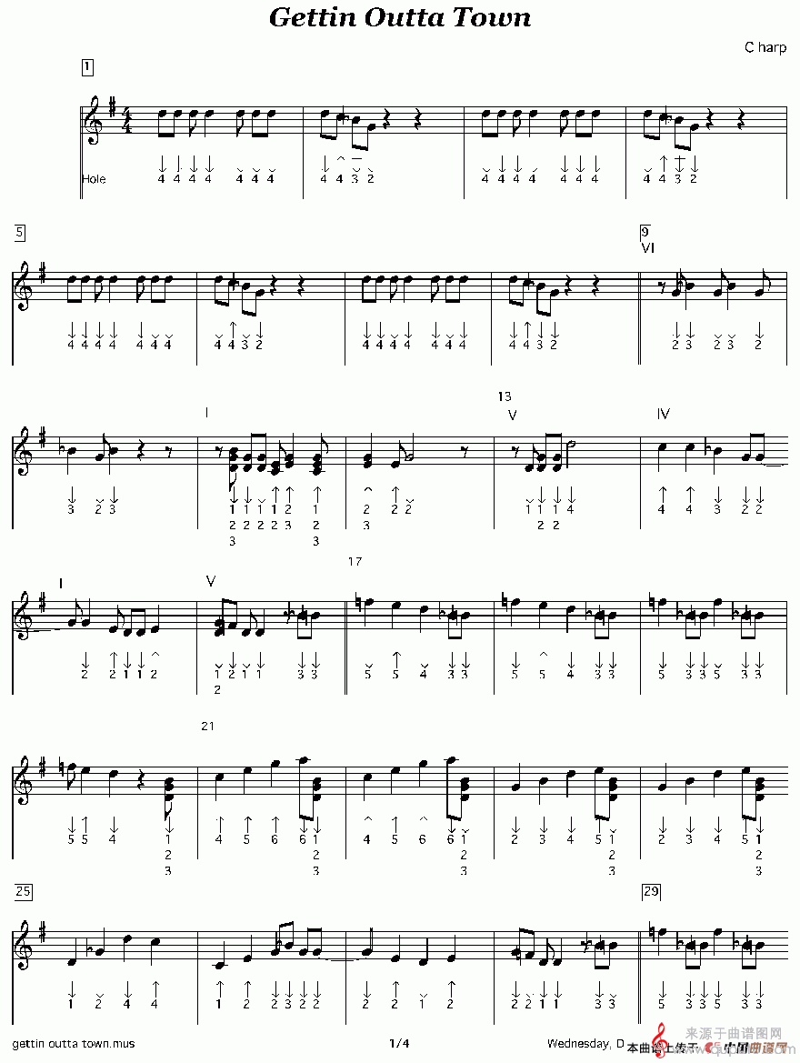 曲谱图网为您提供Gettin Outta Town(口琴曲谱)找谱子,就上曲谱图网。