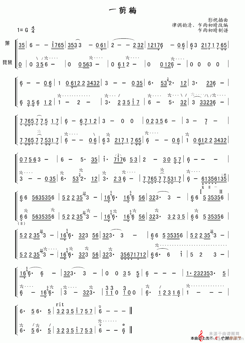 曲谱图网为您提供一剪梅(一剪梅箫+琵琶)找谱子,就上曲谱图网。