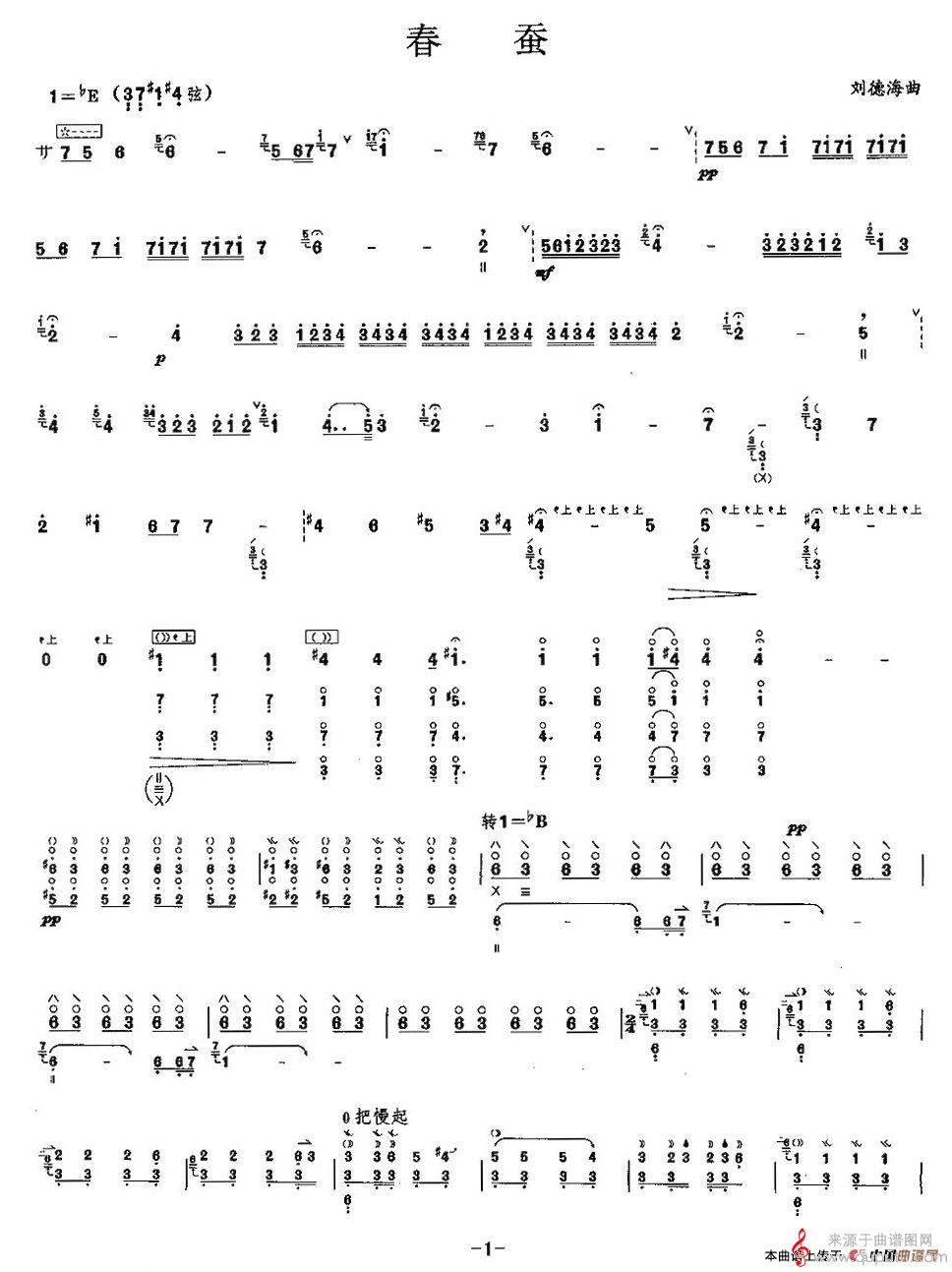 曲谱图网为您提供春蚕(春蚕琵琶)找谱子,就上曲谱图网。