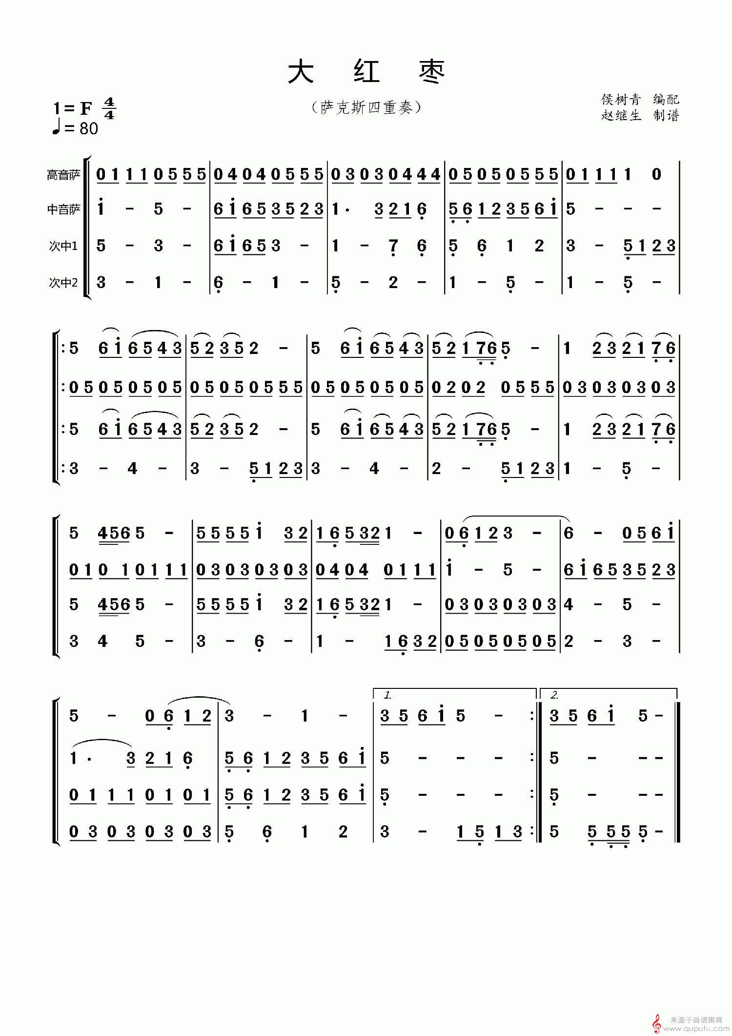 曲谱图网为您提供大红枣(萨克斯四重奏演奏谱)找谱子,就上曲谱图网。