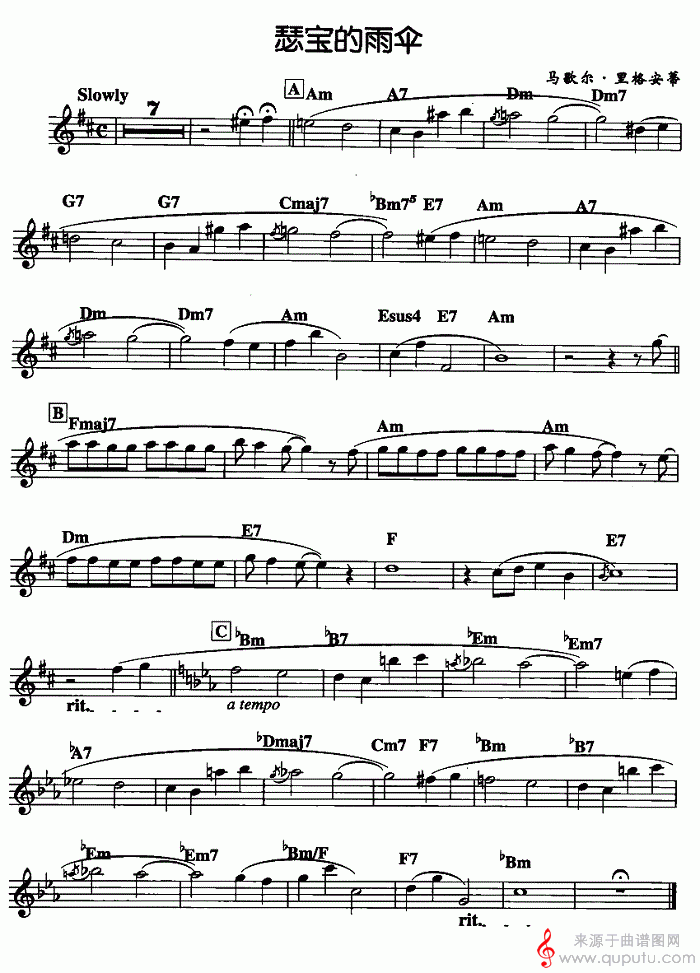 曲谱图网为您提供瑟宝的雨伞(萨克斯曲谱)找谱子,就上曲谱图网。
