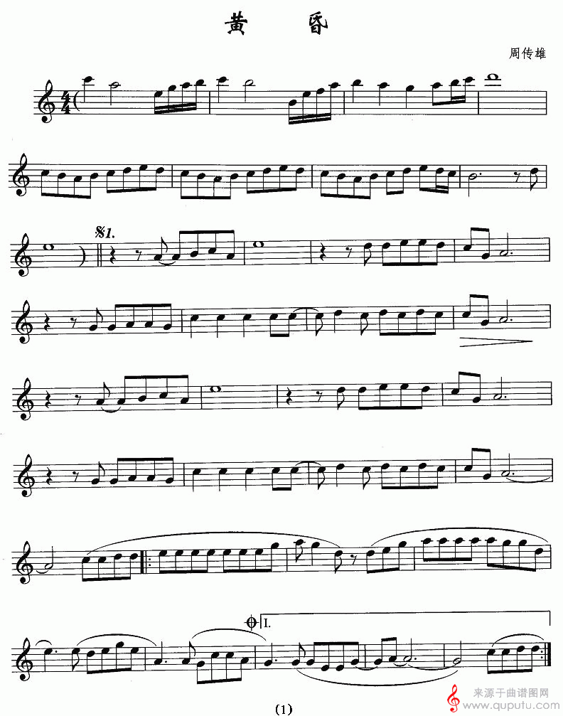 黄昏(萨克斯独奏伴奏五线谱)
