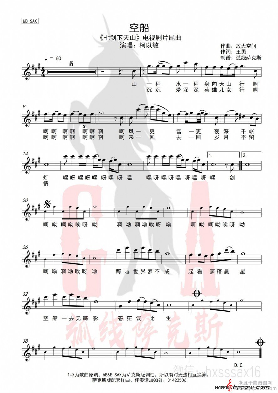 空船(电视剧《七剑下天山》片尾曲萨克斯简谱带歌词)