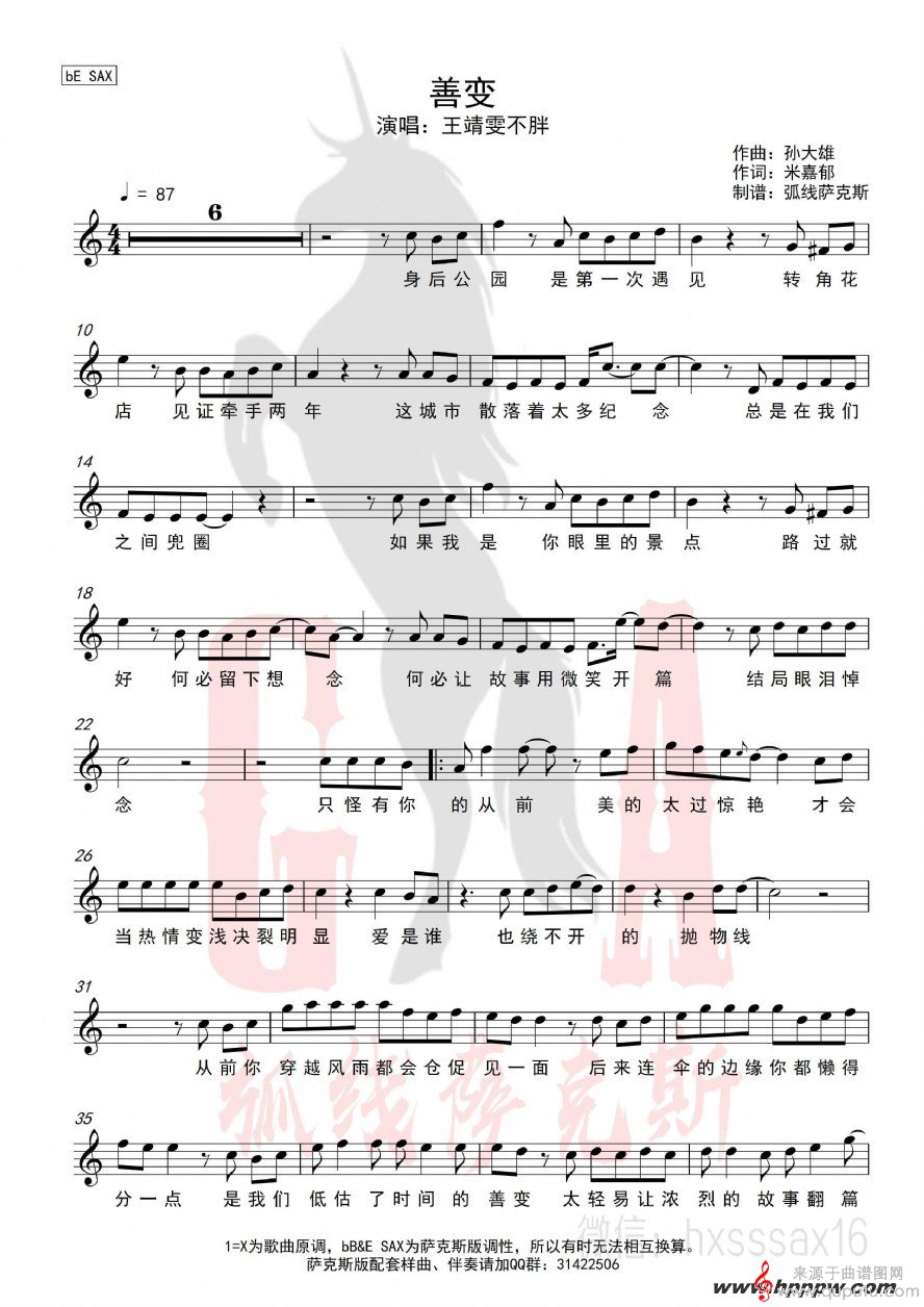 曲谱图网为您提供善变(善变萨克斯歌词歌曲曲谱)找谱子,就上曲谱图网。