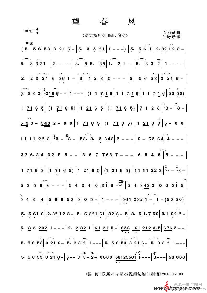曲谱图网为您提供望春风(望春风高音萨克斯独奏五线谱简谱)找谱子,就上曲谱图网。
