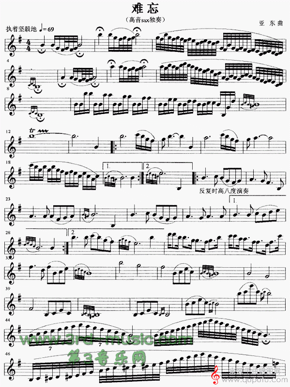 曲谱图网为您提供难忘(难忘高音萨克斯独奏五线谱)找谱子,就上曲谱图网。