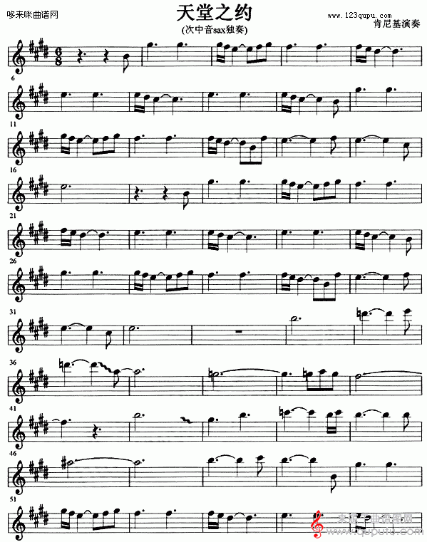天堂之约(天堂之约次中音萨克斯独奏五线谱)