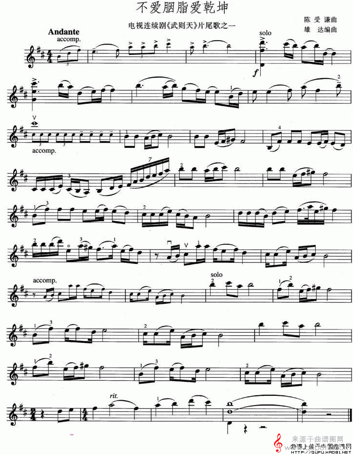 曲谱图网为您提供不爱胭脂爱乾坤(电视剧《武则天》片尾歌之一)找谱子,就上曲谱图网。