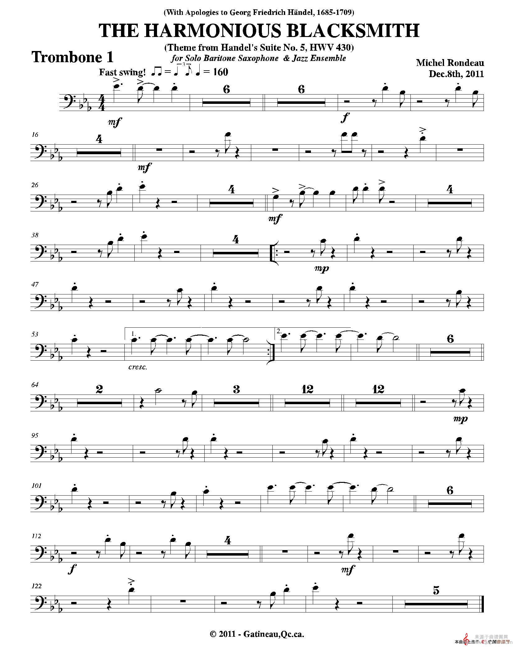 曲谱图网为您提供THE HARMONIOUS BLACKSMITH(第一长号分谱)找谱子,就上曲谱图网。
