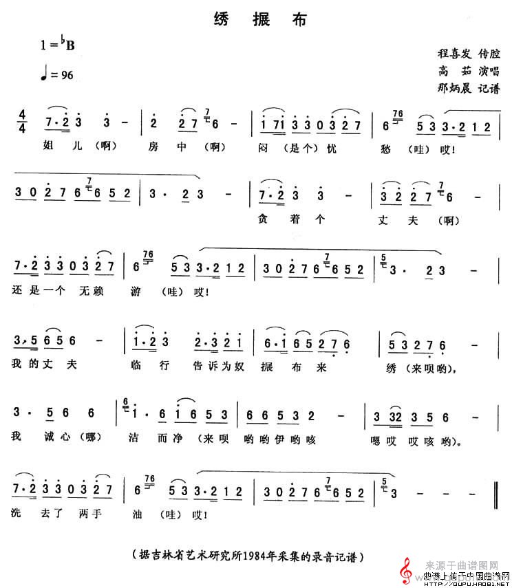 当前位置:曲谱图网戏曲唱谱二人转谱绣搌布