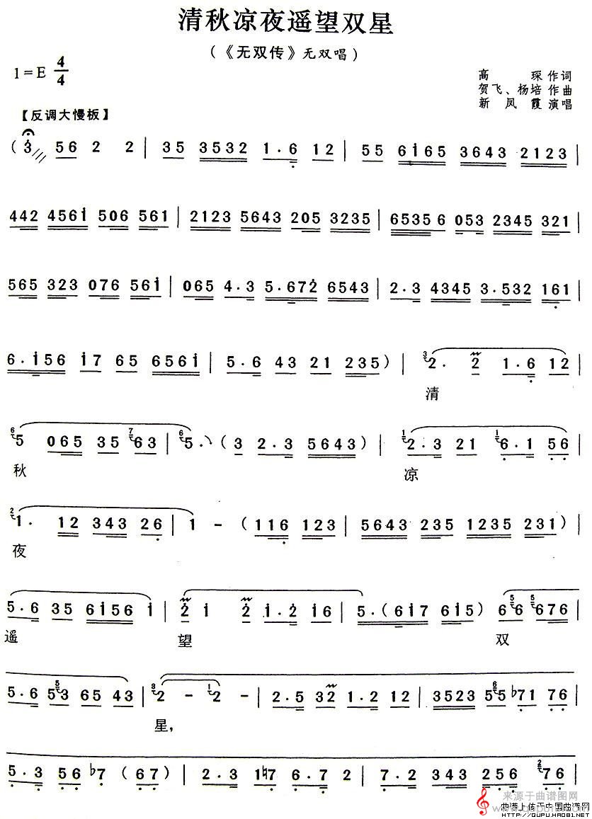 曲谱图网为您提供清秋凉夜遥望双星(《无双传》无双唱段)找谱子,就上曲谱图网。