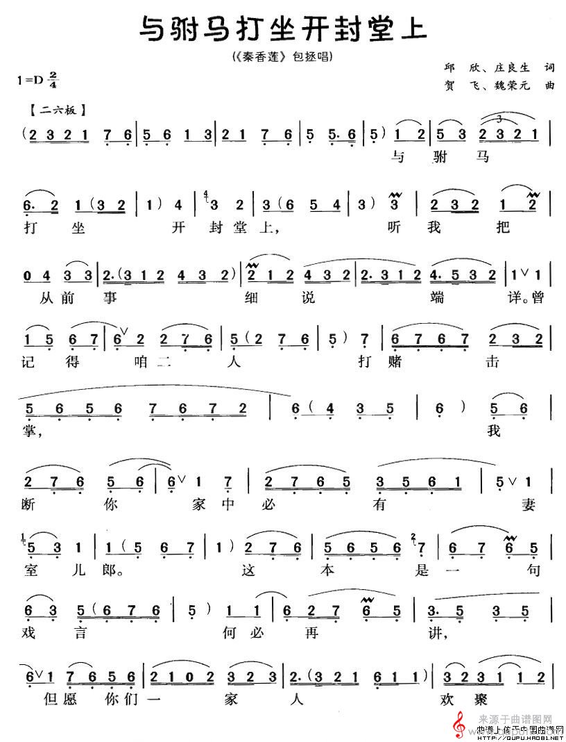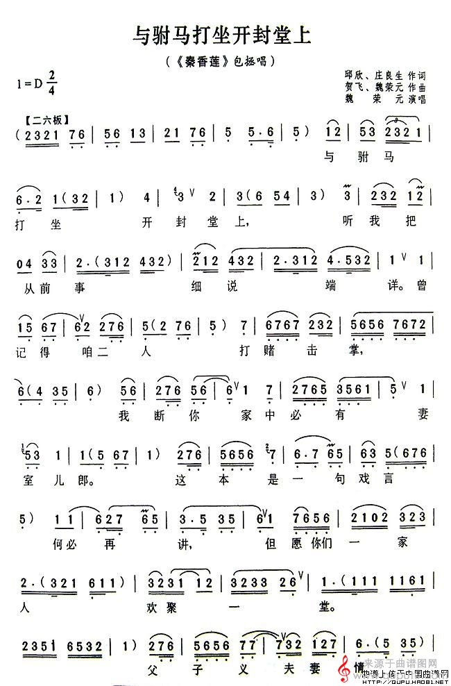 曲谱图网为您提供与驸马打坐开封堂上(《秦香莲》包拯唱段)找谱子,就上曲谱图网。