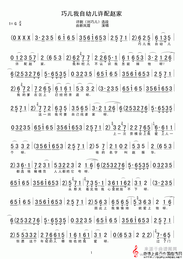 曲谱图网为您提供巧儿我自幼儿许配赵家(《刘巧儿》选段)找谱子,就上曲谱图网。